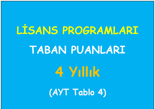 4 Yıllık Üniversiteler Bölümler Taban Puanları ile alan (AYT Lisans Tablo 4) üniversiteler Tıp Hukuk Dişçilik Eczacılık Mühendislik Öğretmenlik Mimarlık PDR… 2023-YKS Yerleştirme Sonuçları Açıklandı (19 Ağustos 2023)    2023 Yükseköğretim Kurumları Sınavı (2023-YKS) sonuçlarına göre… 4 Yıllık Üniversiteler Bölümler Taban Puanları (AYT ile alan Lisans Tablo 4) üniversiteler Tıp Hukuk Dişçilik Eczacılık Mühendislik Öğretmenlik Mimarlık PDR…